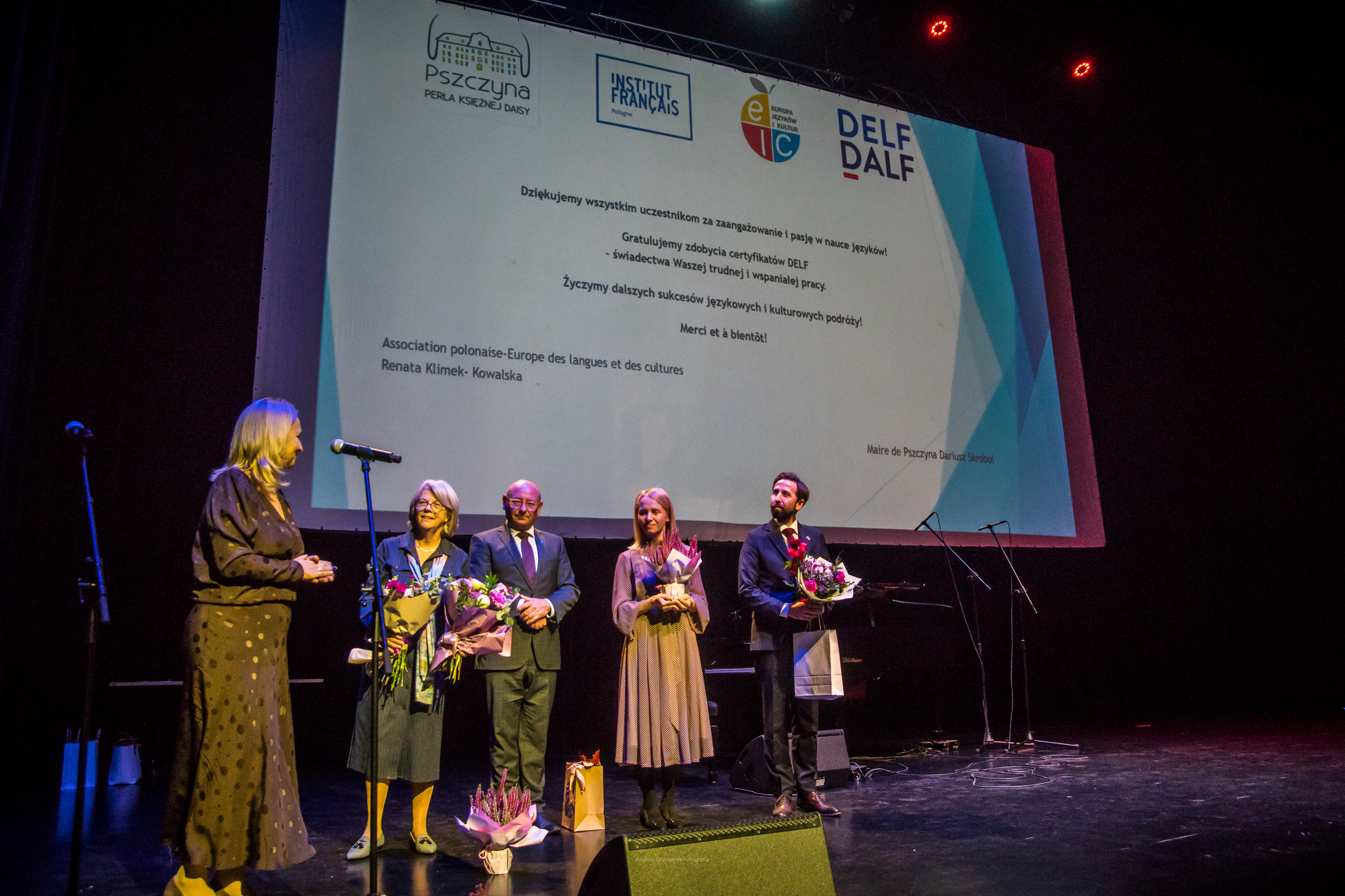 W uroczystości uczestniczyli m.in.: Benjamin Malik-Girodeau - attaché ds. współpracy edukacyjnej Ambasady Francji w Polsce, Iwona Gorczyca-Polus - przedstawicielka Instytutu Francuskiego w Krakowie, Renata Klimek-Kowalska - prezes Stowarzyszenia Europa Języków i Kultur, dyrektor Centrum Egzaminacyjnego DELF-DALF, Dariusz Skrobol - burmistrz Pszczyny, Magdalena Czarnecka - zastępca burmistrza Pszczyny, Katarzyna Gabryś - dyrektor Pszczyńskiego Zarządu Edukacji, Izabela Bąk - naczelnik Wydziału Oświaty Urzędu Miejskiego w Pszczynie, a także dyrektorzy szkół, nauczyciele języka francuskiego, rodzice i uczniowie.